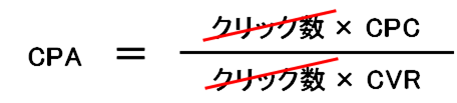分子と分母のクリック数を考慮から外してCPA=CPC / CVRという関係ができる。